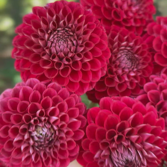 A perfect red ball dahlia that is an incredibly prolific bloomer and tuber producer.