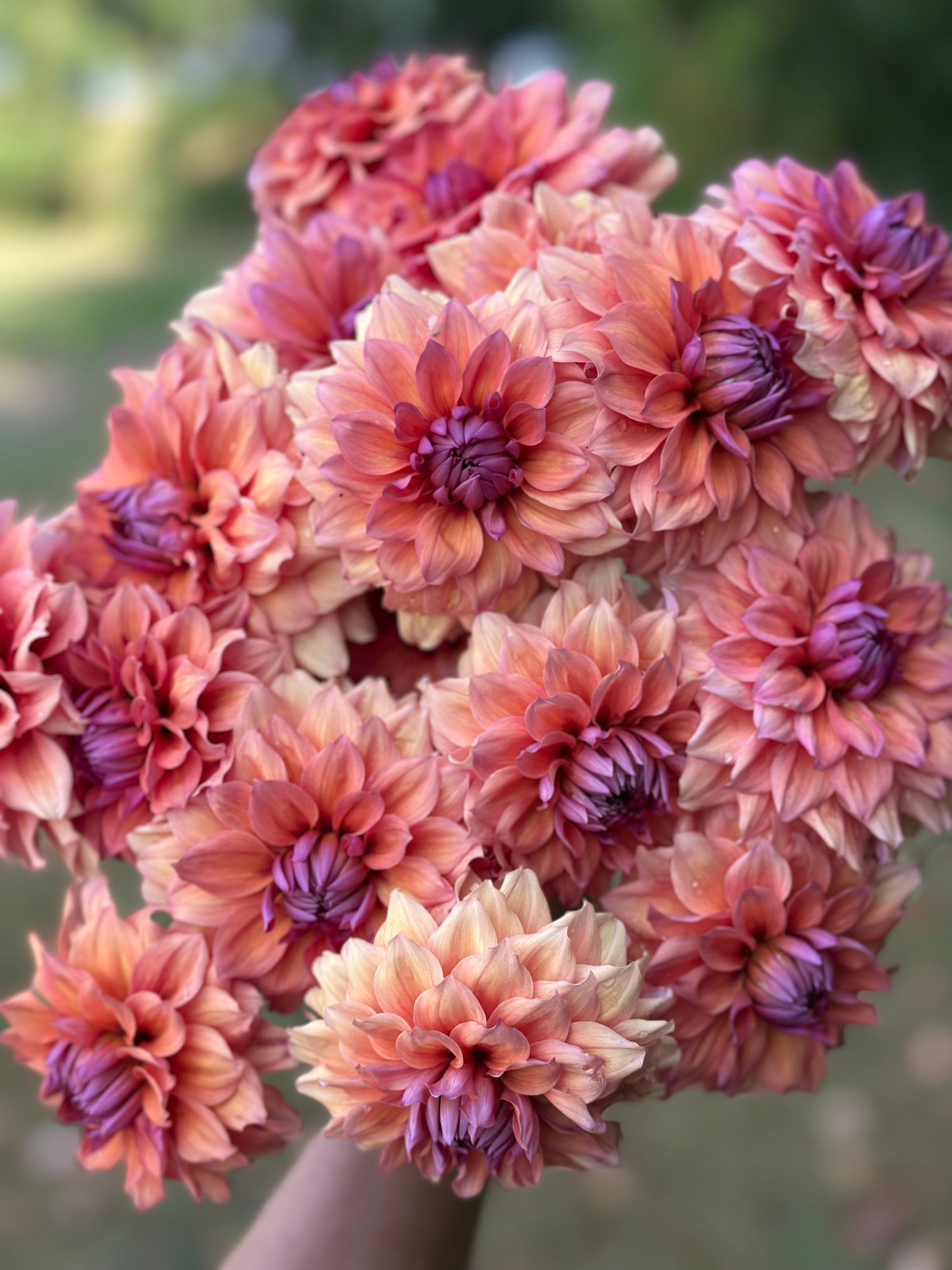 A show stopper! This ombre flower is super concentrated with a peachy-mauve centre that fades to a light peach petal. The form and colouring are just stunning!