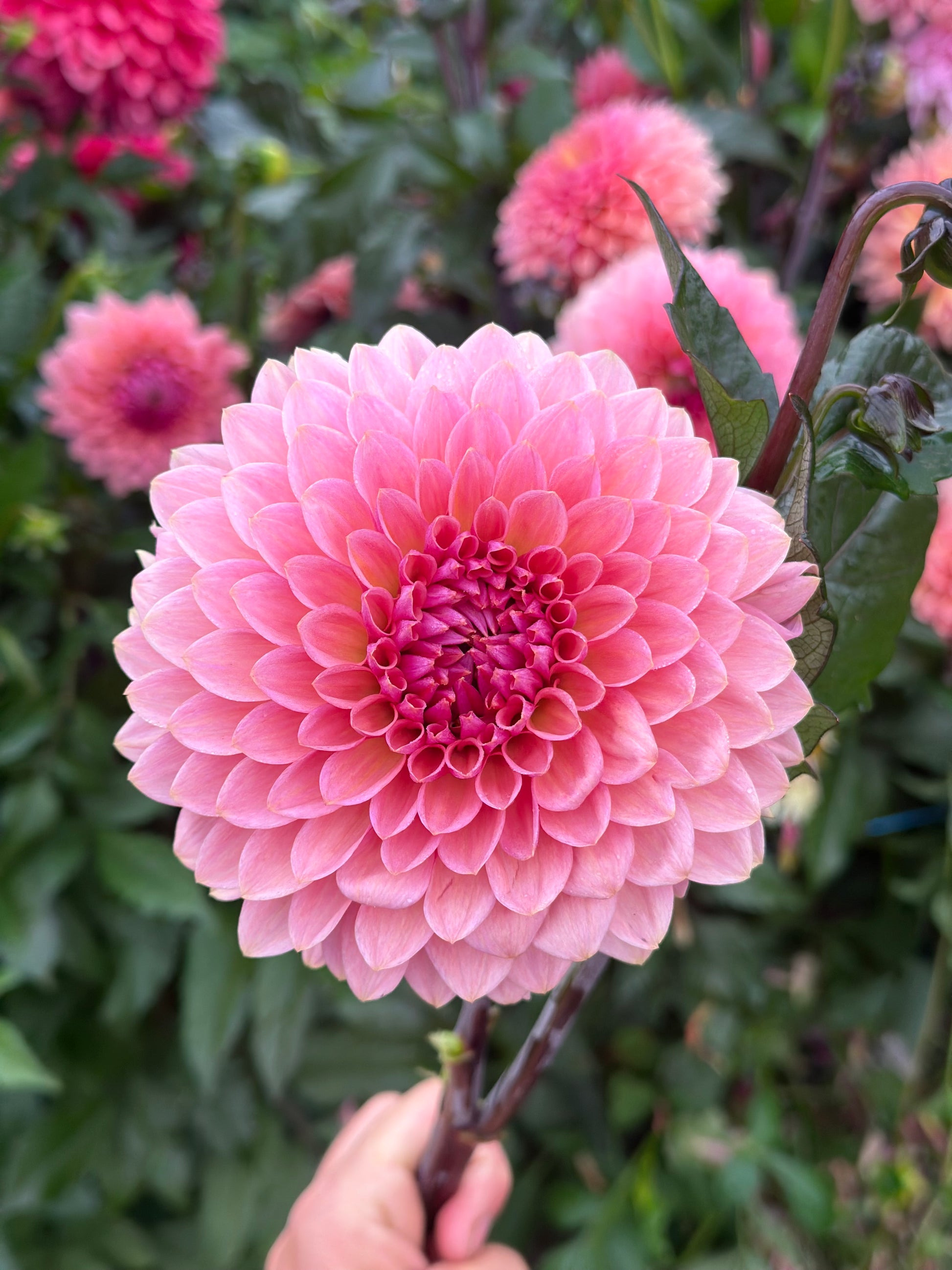 Very floriferous and full of petals; Sweet Sanne is striking with its delicate peach-pink petals centred with a hint of lilac. Its dark stems contrast beautifully.