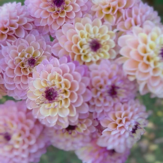 This dahlia puts out such a variety of colours, ranging from a soft pink flower with a purple center to a golden yellow that fades to pink, to purple center. Flowers grow on incredibly long strong stems.